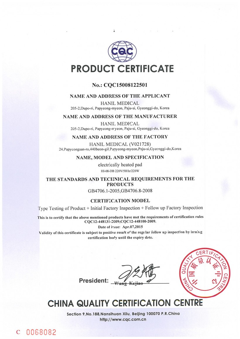 중국 CQC > 인증서